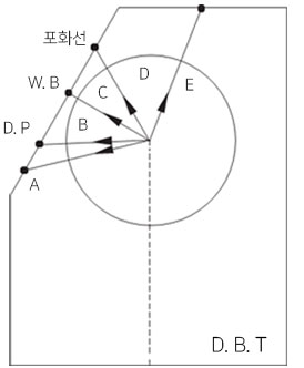 3) ¿¡¾î¿ö¼Å(AWU)ÀÇ ¿ø¸® °øÁ¶±â ³»¿¡ ¼³Ä¡µÈ ´Ù¼öÀÇ ºÐ¹«³ëÁñ¿¡¼ 1.4~2.5kg/cm©÷ ¾Ð·ÂÀ¸·Î ¹°ÀÌ ºÐ¹«µË´Ï´Ù. ÀÌ ¹°Àº ¹Ì¼¼ÇÑ ¹°¹æ¿ïÀÌ µÇ¾î 2.5~3.5m/sÀÇ Ç³¼ÓÀ¸·Î Åë°úÇÏ´Â °ø±â¿Í ÃæºÐÇÏ°Ô Á¢ÃËÇÏ¿© ¹°¹æ¿ï°ú °ø±â °£¿¡ ¿±³ ȯÀÌ ÇàÇÏ¿©Áö¸ç, ¼ö¿ÂÀ» Àû´çÇÏ°Ô ¼±Á¤ÇÔ¿¡ µû¶ó ³Ã°¢, °¡¿, °¨½À, °¡½À ¸ñÀûÀ» ´Þ¼ºÇÒ ¼ö ÀÖ½À´Ï´Ù. ±× ÀÛ¿ë ¼º´ÉÀº ºÐ¹«¼ö¿Â, ÀÔ±¸°ø±â»óÅ¿¡ ÀÇÇÏ¿© °áÁ¤µË´Ï´Ù. °ø±â¼±µµ »ó¿¡ ¼¼Á¤±â ³»¿¡¼ ÇàÇÏ¿©Áö ´Â »óź¯È¸¦ Ç¥½ÃÇÏ¸é ±×¸² 1°ú °°½À´Ï´Ù. °ø±âÀÇ D.Pº¸´Ù ³·Àº ¼ö¿ÂÀ» ºÐ¹«ÇÏ¸é °¨½À ³Ã°¢ÀÌ ÇàÇÏ ¿©Áö°í, DBPº¸´Ù ³·Àº °æ¿ì´Â ³Ã°¢°¡½ÀÀÌ µÇ¸ç DBTº¸´Ù ³ôÀ¸¸é °¡¿°¡½ÀÀÌ µË´Ï´Ù.